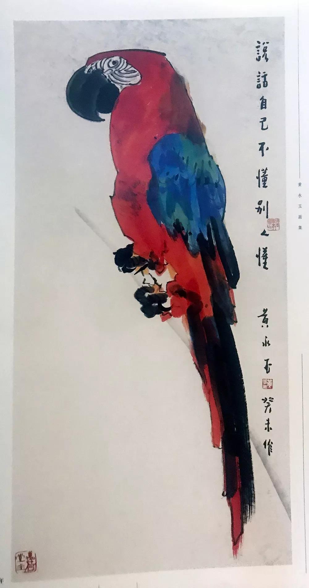 比如黃老畫過一只鸚鵡,精神的很,結(jié)果配字:鳥是好鳥,就是話多。