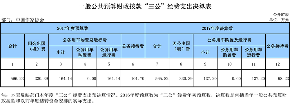 七、關(guān)于中國作協(xié)2017年度一般公共預(yù)算財政撥款“三公”經(jīng)費支出決算情況說明