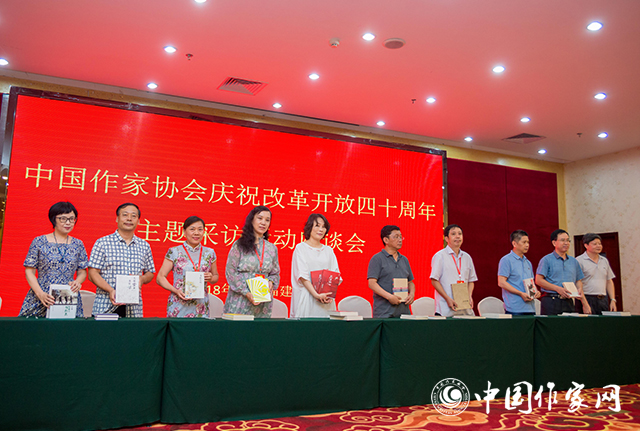 活動期間,采訪團(tuán)還舉辦了座談會。四川省作協(xié)主席、采訪團(tuán)副團(tuán)長阿來從張承志的《石頭的勝利》談起,回顧了海上絲綢之路的歷史,談及泉州的文化基因和自己對文化發(fā)展的思考。他談到,新時代讓中國文學(xué)又迎來了開放的年代,中國文學(xué)還有很長的路要走。作家們需要有新的視角、新的感受、新的技巧與審美,期待對時代負(fù)責(zé)任的寫作者可以創(chuàng)作出更多有分量的現(xiàn)實題材作品。河北省灤南縣作協(xié)主席韓進(jìn)勇表示,作為一名基層作家,非常感謝有這樣的采訪機(jī)會,可以使自己開闊視野,深切感受到改革開放40年來取得的豐碩成果。中國作協(xié)創(chuàng)聯(lián)部副主任、采訪團(tuán)副團(tuán)長包宏烈表示,這次采訪活動既是豐富的社會實踐,也是深入的國情調(diào)研。作為在場者和見證者,大家學(xué)到了真經(jīng),得到了真?zhèn)?,獲取了寶貴而豐沛的創(chuàng)作資源,一定能在日后的寫作之路上創(chuàng)作出更多反映時代精神、展現(xiàn)人民奮斗、振奮民族精神的優(yōu)秀作品。福建省文聯(lián)副主席陳毅達(dá)表示,這次采訪對于福建省作家來說是一次難得的學(xué)習(xí)機(jī)會。福建作為改革開放的前沿地區(qū),蘊(yùn)含豐富的創(chuàng)作資源,文學(xué)的創(chuàng)作必須緊貼時代、社會、現(xiàn)實。采訪團(tuán)的其他作家也在發(fā)言中表示,此次采訪進(jìn)一步增強(qiáng)了自己對改革開放成就的感知與認(rèn)識,下一步,將更加自覺地肩負(fù)起歷史責(zé)任和時代使命,堅持以人民為中心的創(chuàng)作導(dǎo)向,加強(qiáng)現(xiàn)實題材創(chuàng)作,不斷推出有思想、有溫度、有筋骨的佳作。福建省文聯(lián)副主席、省作協(xié)主席楊少衡主持座談會。座談會上還舉辦了贈書儀式,采訪團(tuán)作家們向廈門市文聯(lián)、廈門市作協(xié)捐贈了自己的作品。