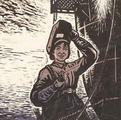 此次展出的楊可揚的版畫,即是其中的代表。他的版畫粗獷、簡潔,構圖飽滿,色彩艷而不俗,在新中國版畫史上留下濃重的一筆,而他的版畫生涯亦可被視為中國新興木刻發(fā)展歷程的生動縮影。早年楊可揚的創(chuàng)作受豐子愷社會生活漫畫的影響,他看到戰(zhàn)爭中的民生疾苦,在時代的感召下,毅然轉(zhuǎn)向進步木刻運動,以手中刻刀作為抗日救國的武器,以黑白木刻版畫為挽救民族危亡而奮發(fā)。新中國成立后,楊可揚的版畫日趨明朗,注重表現(xiàn)景物的意境,也漸漸有了色彩。改革開放之初,他曾創(chuàng)作過一批反映上海乃至江南風貌的版畫,比如捐贈的一幅《九曲橋》,用寫意的方式,刻畫九曲橋的冬日雪景,表現(xiàn)豫園富有詩意的浪漫景色。楊可揚生前曾先后向中華藝術宮捐贈48件重要代表作品。2017年,他的女兒楊以平又將父親的73件版畫代表作再次無償捐贈給中華藝術宮。
