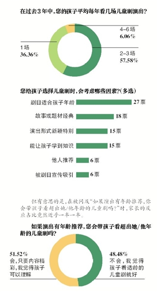 除了張雪,新京報記者也對33位家長做了個小調(diào)查,調(diào)查中發(fā)現(xiàn)有超82%的人在為孩子挑選兒童劇時最看重年齡匹配度。