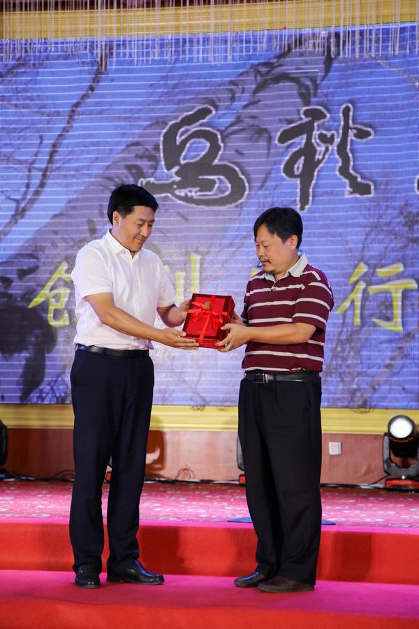 北安市副市長孫金偉向蔣建偉頒發(fā)《烏裕爾》顧問聘書。