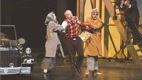 今夏這部《德·浦爾叟雅克先生》采取了與“喜劇芭蕾”的奢華繁復(fù)相反的方向,或許這種極簡追求更具挑戰(zhàn)意義與探索價值。編導(dǎo)試圖盡量忠實于莫里哀原作,同時拉近與當(dāng)代的距離,故事背景被推進(jìn)到上世紀(jì)50年代的巴黎,人物設(shè)定為那個時代保守的巴黎人。通過布景與陳設(shè),演員們的裝扮與氣質(zhì)、肢體與當(dāng)代舞步,包括一臺開上舞臺的小轎車、一輛兜兜轉(zhuǎn)轉(zhuǎn)的老式自行車,那個曾作為“明信片與黑白照片上的常客”的上世紀(jì)50年代巴黎,的確浮升在了舞臺上,其舞臺外觀與時代氣質(zhì),甚至讓人輕易就可聯(lián)想到百老匯音樂劇《一個美國人在巴黎》……
