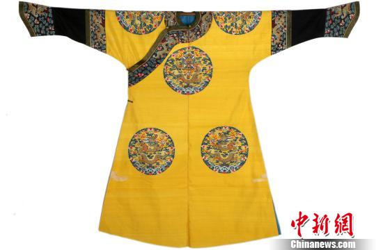 清黃緙絲五彩八團(tuán)金龍袷袍,此袍為清朝皇后在宮中參加節(jié)慶活動穿著的吉服袍。沈陽故宮供圖