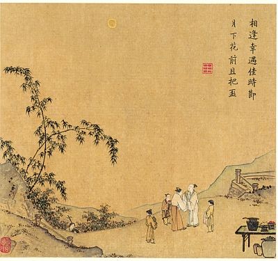 月華如水,清夜如晝,中秋時(shí)節(jié),獨(dú)坐清賞,或邀親友至交閑步敘話,月移影動(dòng),最是一番好景致?!百p月”“步月”“玩月”便成了此時(shí)必不可少的活動(dòng)。