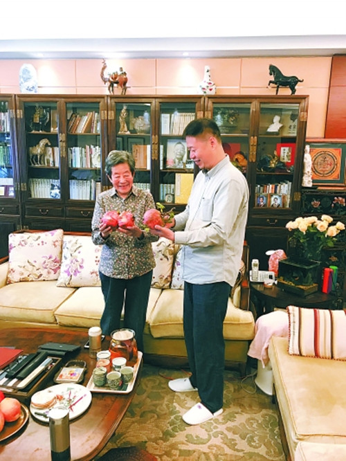 《老舍點(diǎn)戲》開(kāi)幕式后,徐國(guó)衛(wèi)拜訪了舒濟(jì)先生。把老舍濟(jì)南舊居里結(jié)的石榴奉上時(shí),舒先生特別高興。