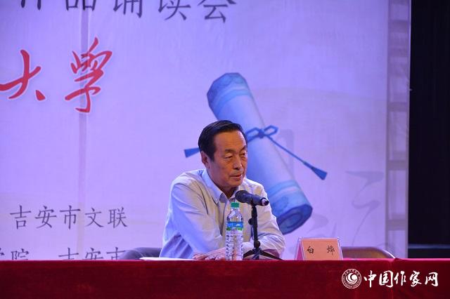 29日下午,由中國作協(xié)主辦,江西作協(xié)、井岡山大學(xué)、吉安市文聯(lián)協(xié)辦的中國作協(xié)“文學(xué)照亮生活”全民公益大講堂暨優(yōu)秀文學(xué)作品誦讀會(huì)在井岡山大學(xué)舉行。中國社科院研究員、中國當(dāng)代文學(xué)研究會(huì)會(huì)長(zhǎng)白燁以《經(jīng)典是怎樣煉成的》為題作講座。井岡山大學(xué)校黨委書記彭涉晗致辭,培訓(xùn)班學(xué)員、井岡山大學(xué)師生、部分江西省作家、吉安市文學(xué)愛好者等參加活動(dòng)。