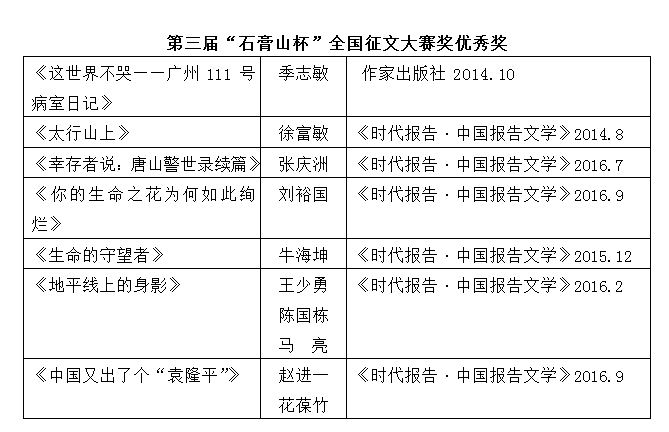 第三屆“石膏山杯”全國征文大賽獲獎(jiǎng)作品頒獎(jiǎng)辭