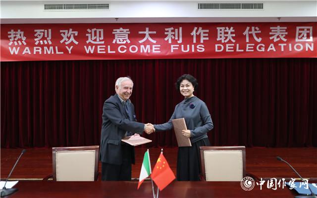 鐵凝與納塔萊?羅西共同簽署 《中國(guó)作家協(xié)會(huì)與意大利作家聯(lián)合會(huì)友好交流與合作諒解備忘錄》