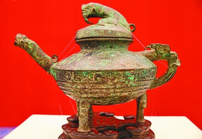 “鎣”音“瑩”??脊艑W家孫機告訴記者,鎣是用來盛放一種叫“郁金”的液體香料的容器。他介紹,古代人認為神不吃東西,而喜歡聞香氣的。所以就把酒放在爵中,下面用火加熱,促進酒氣揮發(fā)。由于古代的酒通常濃度較低、氣味比較清淡,所以特別要在酒中調(diào)入“郁金”,增加香味以娛神。他還說,目前已知存世的“鎣”不超過8件,有些是出土的,甚至是殘破的,而“虎鎣”卻非常完整,且造型奇特,所以十分珍貴。