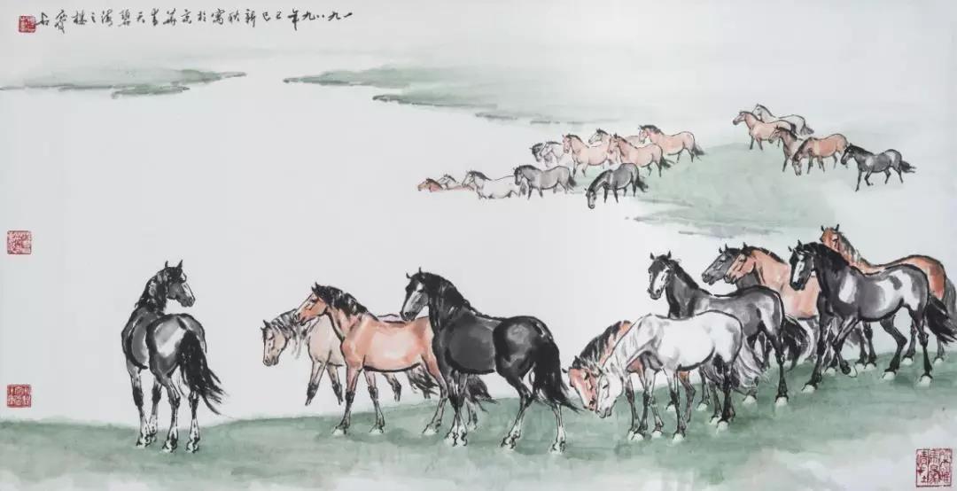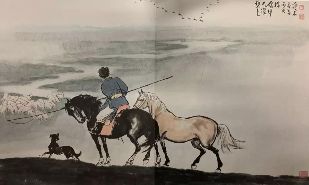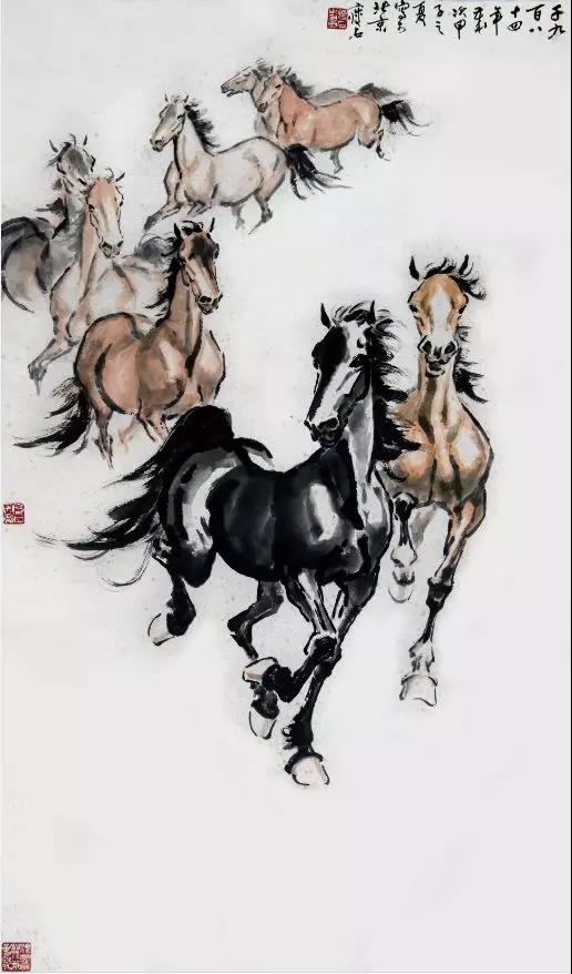 據(jù)介紹,尹瘦石先生的藝術創(chuàng)作,成熟于國難當頭、民族危亡之際。在抗日戰(zhàn)爭時期,他創(chuàng)作的古代人物畫、歷史畫,生動記錄了一個難忘時代中華群英的風采,成為彌足珍貴的歷史文化遺存。1945年,畫家尹瘦石和詩人柳亞子聯(lián)合舉辦“柳詩尹畫聯(lián)展”,毛澤東題寫展名,郭沫若、茅盾、沈鈞儒、黃炎培等人發(fā)表評論。徐悲鴻稱贊:“《柳詩尹畫聯(lián)展》是詩人和畫家在艱危之際向祖國和人民奉獻的一曲悲壯昂揚的戰(zhàn)歌。”尹瘦石先生擅畫馬。他筆下的駿馬源于內(nèi)蒙古大草原,既有濃郁的草原生活氣息,又深含精神的意蘊,收藏于北京畫院的1961年創(chuàng)作的《京郊牧馬圖》、1977年創(chuàng)作的《奮進》,從作品中我們看到的不僅是他嫻熟的畫馬技巧,更多的畫面中迸發(fā)出的是時代精神。