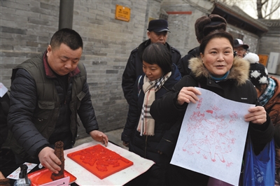 非遺展示也是此次花市燈會的亮點。很多人現(xiàn)場觀看老手藝人們制作毛猴、葫蘆燙畫、北京首飾等頗具京味的手工藝品,還有的游客體驗京繡。其中,“廚子舍”將清真宴席技藝帶到了現(xiàn)場,各類美食一字排開,書法家現(xiàn)場給居民送“福”,殘疾人則帶來了串珠中國結(jié)等手工制作的節(jié)日小物件。
