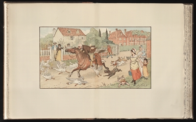 全彩插畫,出自圖畫書《約翰·吉爾品趣事》(1878年),“凱迪克圖畫書獎”的標志就是根據(jù)這幅圖畫設計而成。