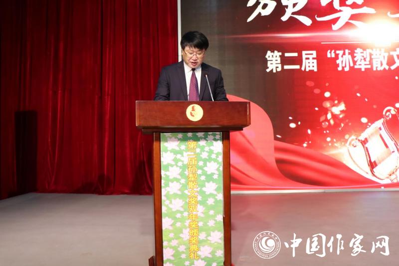 4月13日,第二屆“孫犁散文獎”雙年獎(2017-2018)頒獎典禮在河北省安平縣第二中學舉行。活動由散文選刊雜志社、中共衡水市委宣傳部、中共安平縣委、安平縣人民政府等單位共同主辦。中國作協(xié)副主席李敬澤出席頒獎典禮并致辭,中共安平縣委副書記、政府縣長范慶法致歡迎詞。衡水市人大主任王金剛,衡水市副市長崔海霞,何弘、鄧凱、劉家科、葛一敏、喬葉、馮杰等部分評委,當?shù)赜嘘P部門領導參加典禮并為獲獎作家頒獎。