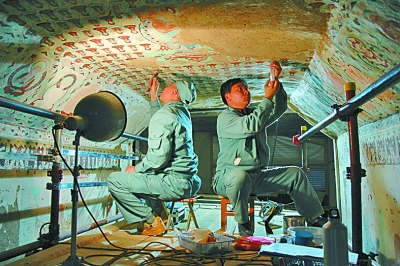 為解決古代壁畫病害機(jī)理闡述不清、基礎(chǔ)性研究薄弱、保護(hù)難度大等問題,國家文物局、科技部和甘肅省先后依托敦煌研究院成立了古代壁畫保護(hù)國家文物局重點(diǎn)科研基地、國家古代壁畫與土遺址保護(hù)工程技術(shù)研究中心、甘肅省古代壁畫與土遺址保護(hù)重點(diǎn)實(shí)驗室,通過社會科學(xué)與自然科學(xué)等多學(xué)科的交叉,借助相關(guān)領(lǐng)域的科研優(yōu)勢進(jìn)一步探索適合于敦煌石窟的保護(hù)方式。