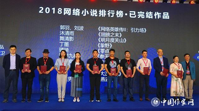 2018中國網(wǎng)絡(luò)小說排行榜已完結(jié)作品上榜作者領(lǐng)取證書并合影