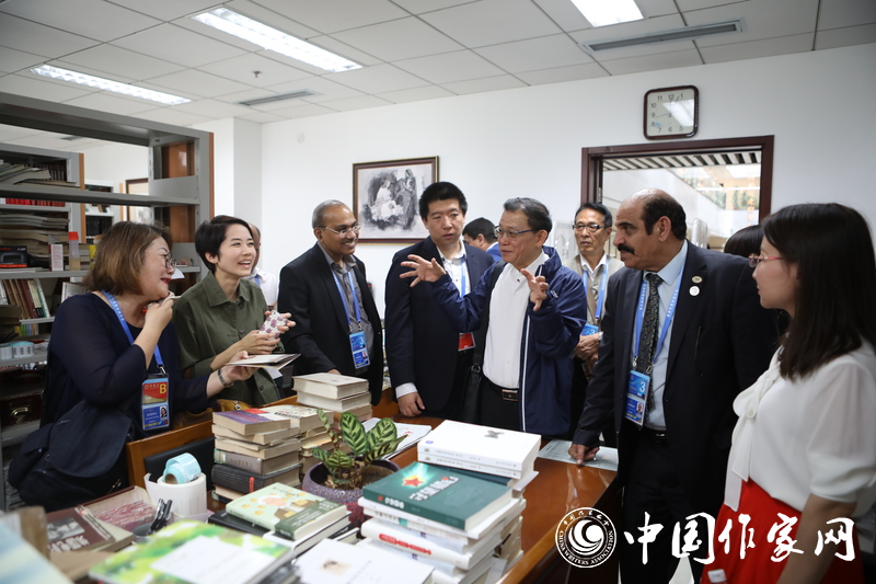 與會代表參觀魯院圖書室并親切交談