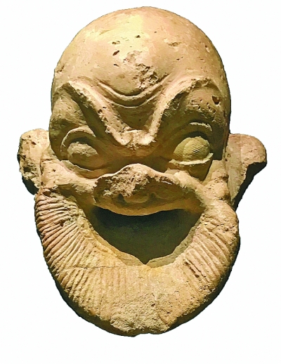 阿伊哈努姆遺址出土的面具型噴水口造型源自古希臘喜劇演出的假面具。本報(bào)記者 吳瀟怡攝/光明圖片