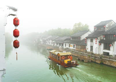 雨霧中的江蘇無錫清名橋古運(yùn)河水弄堂。 資料圖片
