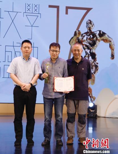李洱(中)榮獲“年度杰出作家”稱號。主辦方供圖