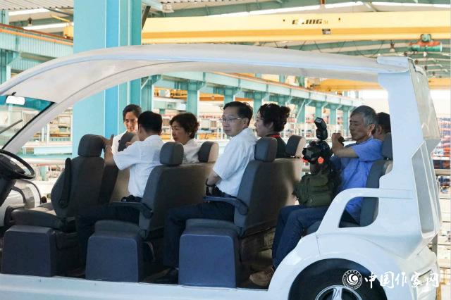 短短幾天的采訪行程緊湊而充實(shí),作家們深入經(jīng)濟(jì)生產(chǎn)第一線,對(duì)社會(huì)生產(chǎn)發(fā)展有了更深層次的了解。作家朱山坡被朝著世界最先進(jìn)科技奮勇直前的科技工作者的默默耕耘、舍我其誰(shuí)的精神感染,“他們讓我親眼看到了時(shí)代之光、民族之魂,是文學(xué)書(shū)寫(xiě)的最好對(duì)象。他們將會(huì)在我的筆下出現(xiàn),在我的作品里發(fā)光?!弊骷已f(shuō),這次采風(fēng)讓大家深入生產(chǎn)一線了解先進(jìn)人物的不凡事跡,見(jiàn)證了共和國(guó)成立70年來(lái)取得的成就。他深刻感受到,作家的雙腳要牢牢踏在大地,讓靈感的種子在現(xiàn)實(shí)生活的土壤中萌發(fā),作家的創(chuàng)作要追求高境界、大格局,以世界眼光書(shū)寫(xiě)家國(guó)情懷,以全球眼光關(guān)懷人類(lèi)命運(yùn)。作家紀(jì)紅建在新時(shí)代造船廠看著一艘艘大型油船時(shí),想到這些船已經(jīng)或即將從這里起航,遠(yuǎn)銷(xiāo)歐、亞、美等國(guó)家和地區(qū),他感覺(jué)自己觸摸到了新中國(guó)成立70年來(lái)的巨大變化,也深刻感受著新時(shí)代中國(guó)制造的豪邁,更感受到了奮勇拼搏、銳意創(chuàng)新的中華民族精神數(shù)千年來(lái)的傳承。