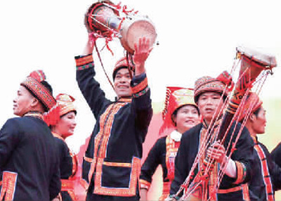 佳瑤合作社瑤胞們在表演自治區(qū)級非物質(zhì)文化遺產(chǎn)長鼓舞(資料圖片)