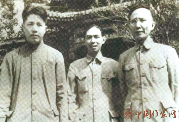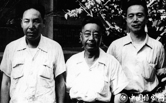 1949年,周揚(yáng)(左)、茅盾(中)、郭沫若在一起
