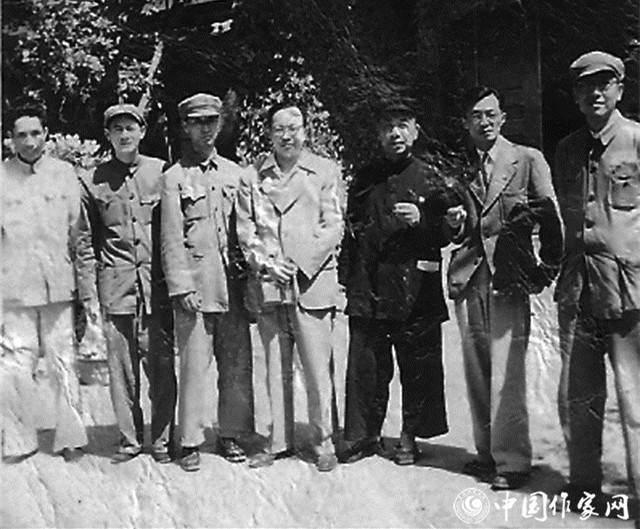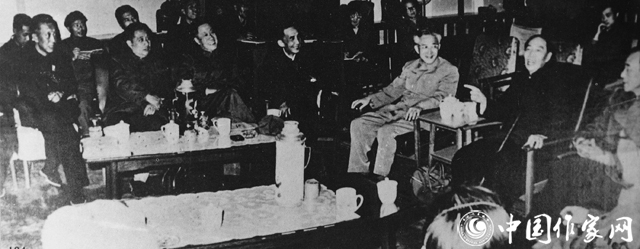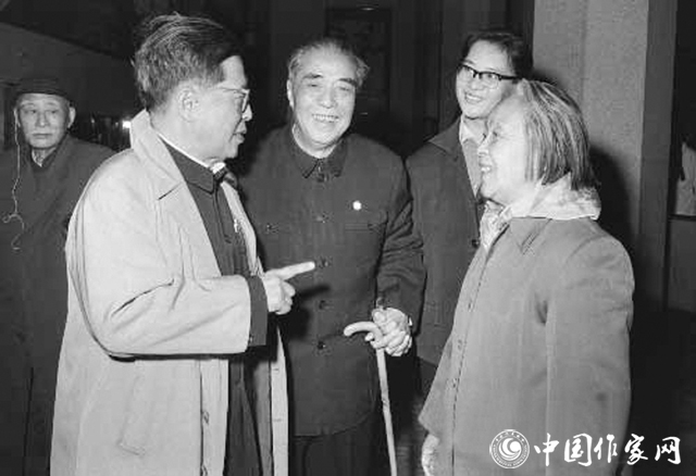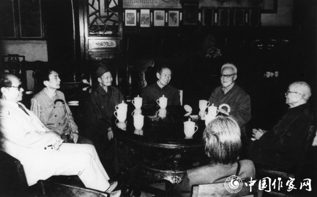 1979年第四次全國(guó)文代會(huì)期間的曹禺(左一)和丁玲(左四)、陽(yáng)翰笙(左二)