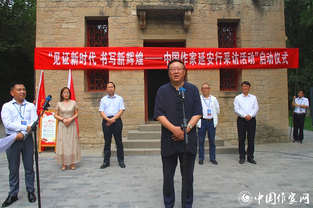 8月19日下午,“見證新時代 書寫新輝煌——中國作家延安行采訪活動”啟動儀式在延安市楊家?guī)X革命舊址舉行。中國作協(xié)副主席高洪波,陜西省作協(xié)黨組書記、常務副主席錢遠剛,中共延安市委常委、宣傳部長柯昌萬出席儀式并致辭。來自全國各地近30名作家以及延安市作協(xié)主席團成員、延安市委宣傳部負責同志等100多人參加啟動儀式。儀式由中國作協(xié)創(chuàng)聯(lián)部主任彭學明主持。