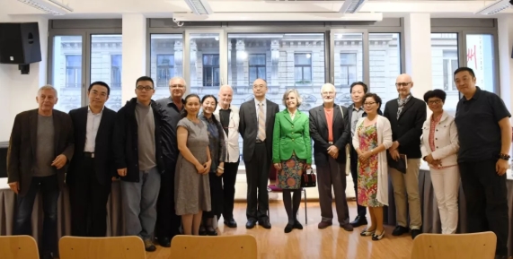 中國(guó)作協(xié)代表團(tuán)同奧地利八棵芭出版社社長(zhǎng)瓦爾特·菲林格碩士交流