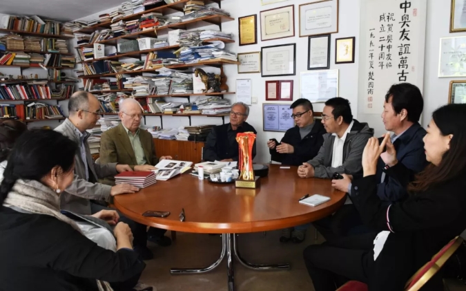 當(dāng)天上午,中國(guó)作協(xié)代表團(tuán)一行還拜訪了奧地利著名漢學(xué)家、奧中友協(xié)常務(wù)副主席格爾德·卡明斯基教授(Prof. Gerd Kaminski),奧地利八棵芭出版社社長(zhǎng)瓦爾特·菲林格碩士會(huì)見(jiàn)時(shí)在座。雙方就中奧文化交流、出版合作等問(wèn)題進(jìn)行了務(wù)實(shí)交流,彼此就未來(lái)可能的合作項(xiàng)目表達(dá)了初步意向。
