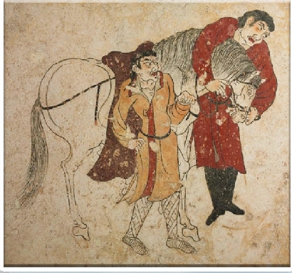 1990年禮泉縣唐太宗昭陵韋貴妃墓出土的“胡人備馬圖”