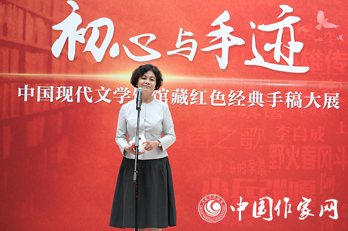 在全國(guó)人民歡欣鼓舞,共享中華人民共和國(guó)成立70周年偉大榮光的喜慶氛圍里,9月24日,“初心與手跡——中國(guó)現(xiàn)代文學(xué)館館藏紅色經(jīng)典手稿大展”在京開幕,以一部部呈現(xiàn)著英雄風(fēng)骨和革命精神的紅色經(jīng)典向新中國(guó)的生日獻(xiàn)禮。中國(guó)作協(xié)主席鐵凝出席開幕式并宣布展覽開幕。中國(guó)作協(xié)黨組書記、副主席錢小芊在開幕式上致辭。中國(guó)作協(xié)副主席吉狄馬加、閻晶明,中國(guó)作協(xié)書記處書記魯敏出席開幕式。開幕式由中國(guó)作協(xié)副主席李敬澤主持。