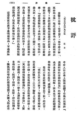 至于《福報(bào)》所載關(guān)于我的消息更無答復(fù)或表示之必要,我寫小說是要申訴自己的悲哀,亦即是我所感到的人類的悲哀。我始終反對把文學(xué)作宣傳工具。文藝是表現(xiàn)人生的面相,并不如某一般所想象的那么簡單,所以我的材料取自各方面。我為自己而寫小說,在我是非怎樣寫不可的。別人的批評我當(dāng)然不管而且別人也不了解我。我近來的短篇小說具在,《福報(bào)》的話,明眼人當(dāng)然不會相信。承你關(guān)切故告。