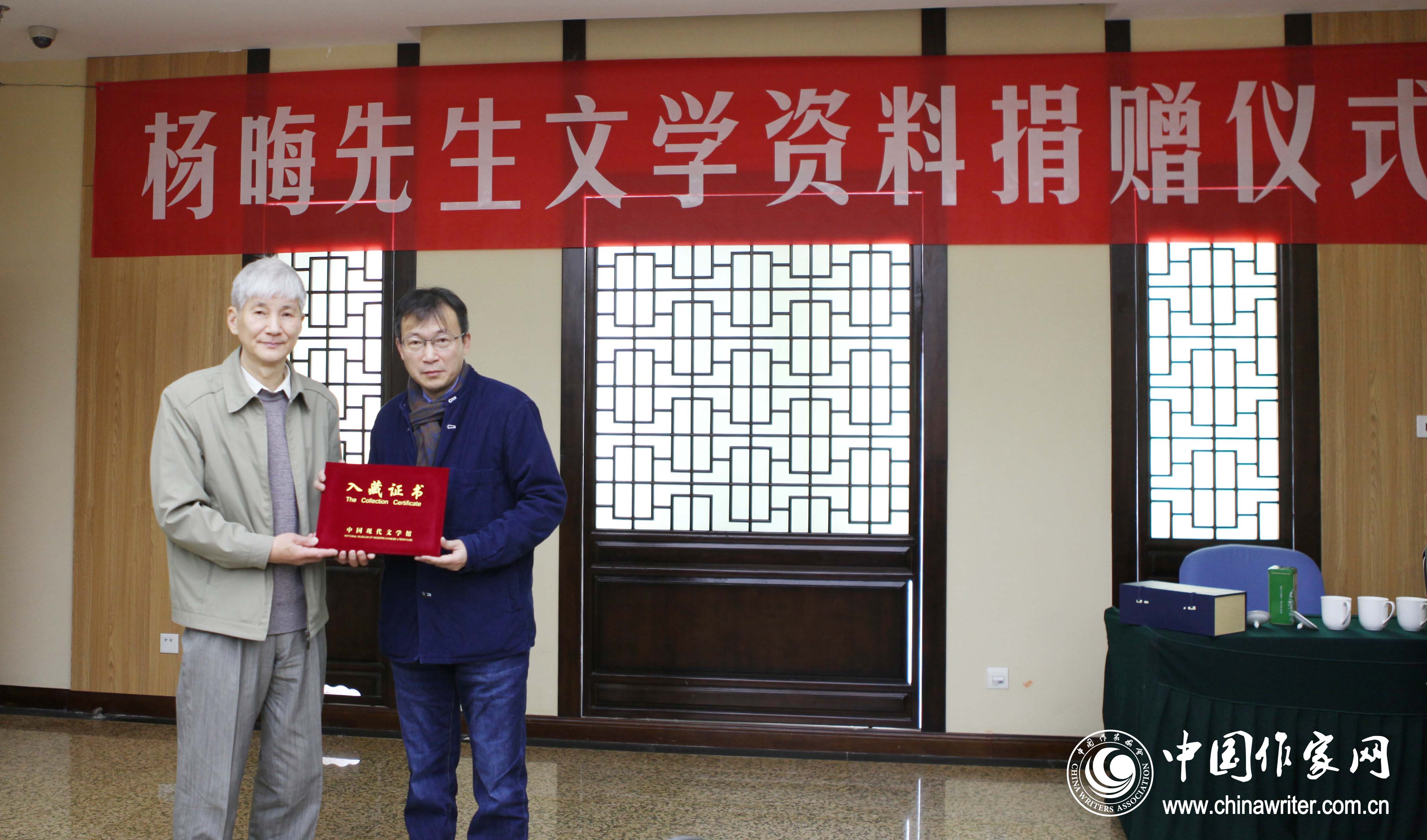 中國現(xiàn)代文學(xué)館副館長李榮飛為楊晦先生子女頒發(fā)入藏證書