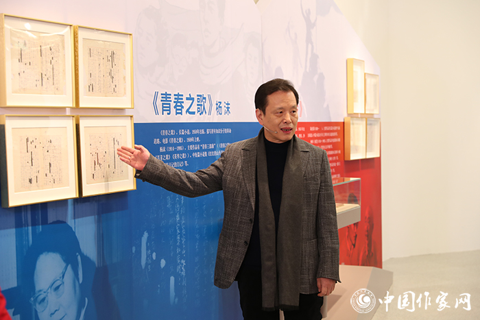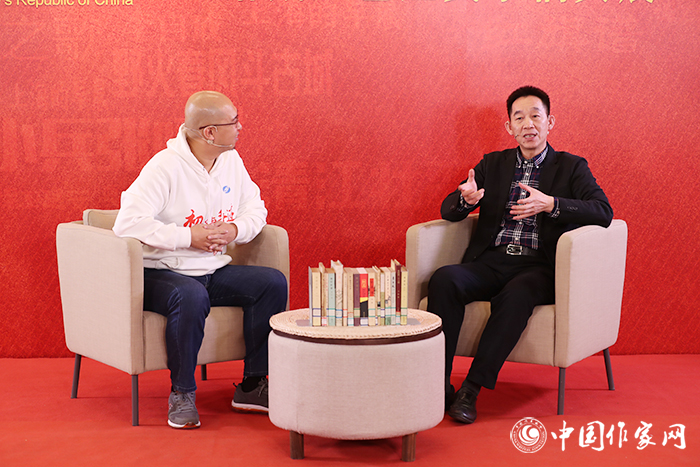 梁鴻鷹(左)介紹《文藝報(bào)》創(chuàng)刊背景