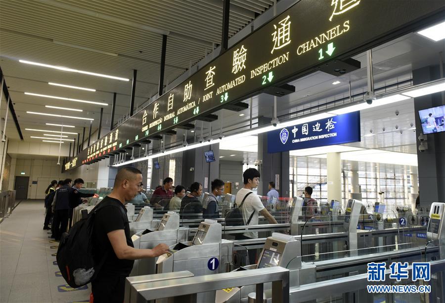在港珠澳大橋澳門邊檢大樓,旅客從自助查驗(yàn)通道通關(guān)去往廣東珠海(11月21日攝)。新華社記者 徐亮 攝