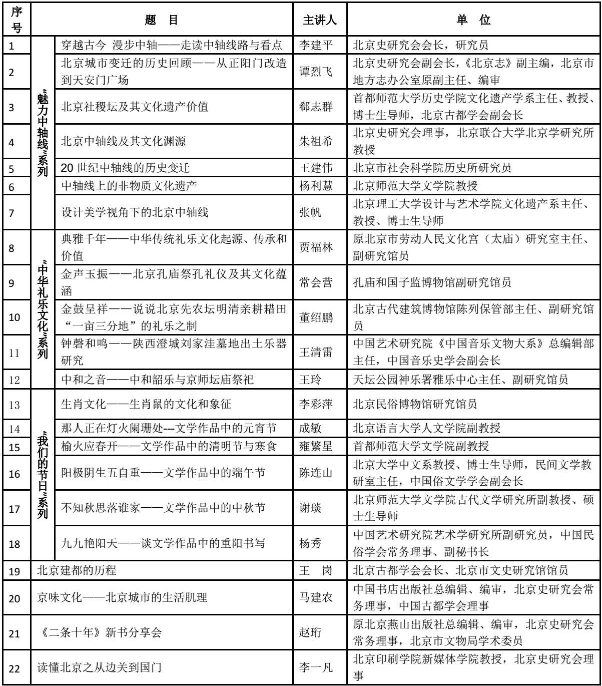 附:2020年“首圖講壇?鄉(xiāng)土課堂”北京歷史文化科普講座計劃一覽表