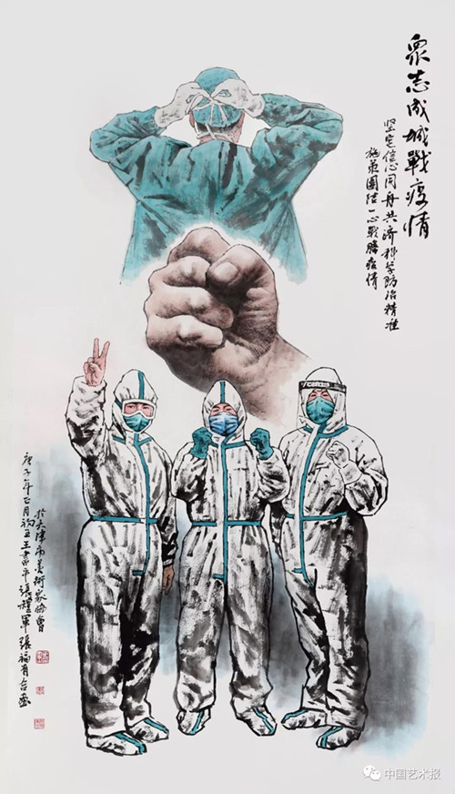 1月25日是大年初一,舉國上下抗擊新型冠狀肺炎的嚴峻形勢牽動著每個百姓的心。廣西北部灣書畫院院長陳中華拿起畫筆創(chuàng)作《抗擊新冠肺炎》,以表達對戰(zhàn)斗在一線的醫(yī)務工作者的崇敬之心。