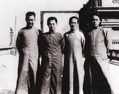 1933年攝于北平,左起:蕭乾、曹禺、沈從文、靳以