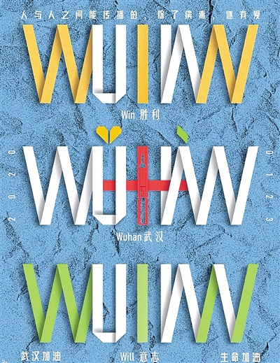 此外,來自湖北美術(shù)學(xué)院的吳雨健的《WWW》運(yùn)用巧妙的字母設(shè)計(jì)傳達(dá)“武漢加油、生命加油”的祝福;來自四川美術(shù)學(xué)院的荊治豪的《決戰(zhàn)疫情》聚焦了火神山、雷神山醫(yī)院的建造;來自廣州美術(shù)學(xué)院的陳天健的《宅家的燈,也是抗疫的光》強(qiáng)調(diào)了疫情期間減少外出的重要性;來自魯迅美術(shù)學(xué)院的曹越的《逆向而行,即為戰(zhàn)士》謳歌了戰(zhàn)斗在一線的醫(yī)護(hù)人員;來自天津美術(shù)學(xué)院的戚芳瑜的《病從口入,禍從口出》則在呼吁禁食野味的同時(shí),強(qiáng)調(diào)了散播謠言的危害……