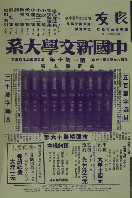 《良友畫報》第103期介紹《中國新文學(xué)大系》的整張廣告