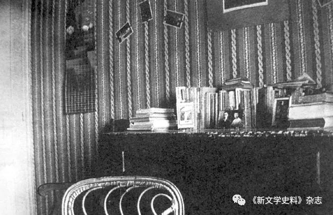書桌相當(dāng)大,上面放著二三十本洋書,三兩筆記本和小冊子疊放上面,右方三本辭典模樣的大書。書前擺放著三個小相框,中間那個并排著他本人和未婚妻朱梅馥的個人肖像照片。墻上掛著西方風(fēng)格的布簾,上面綴有飾物,大約是房東的布置。這張沒有人物的照片,比千言萬語更能概括傅雷這六個月的生活:一個安靜的生活環(huán)境,一個勤奮向?qū)W的學(xué)生。