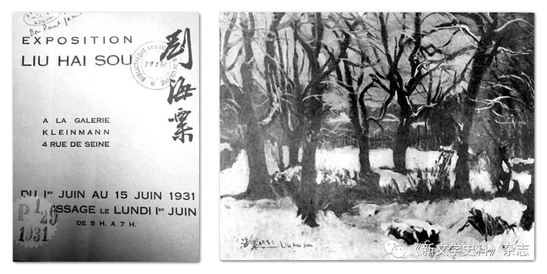 劉海粟畫展海報(1931年)及法國政府選購的《盧森堡之雪》(1931年)
