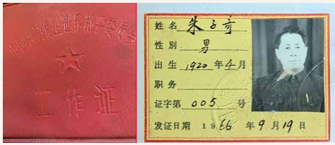 朱子奇在中華人民保衛(wèi)世界委員會(huì)工作時(shí)的工作證