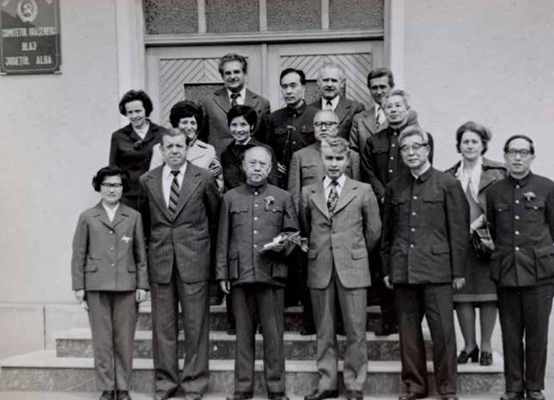 1978年4月中國(guó)人民對(duì)外友好協(xié)會(huì)代表團(tuán)訪問(wèn)羅馬尼亞,左二布楚里、左三團(tuán)長(zhǎng)王炳南、右一杜宣、右二梅益、二排右二為朱子奇。