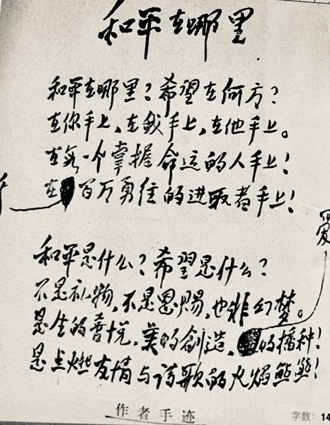 朱子奇手稿“朦朧的春天總是要被明朗的春天代替的”
