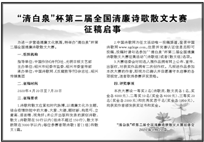 “清白泉”杯第二屆全國清廉詩歌散文大賽征稿啟事
