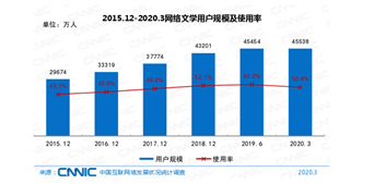 2015.12-2020.3網(wǎng)絡文學用戶規(guī)模及使用率