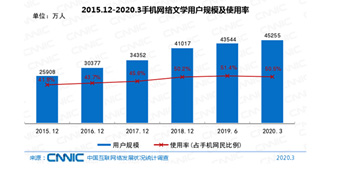 2015.12-2020.3手機網(wǎng)絡文學用戶規(guī)模及使用率
